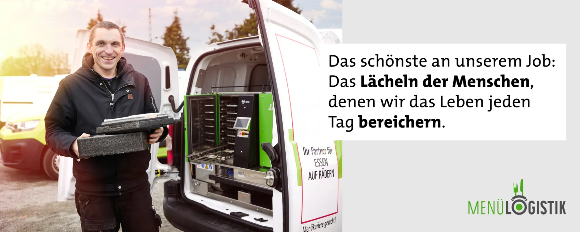 - Zwischen 09.30-13.15 Uhr liefern Sie die Mittagsmenüs zu unseren Kunden und beraten diese vor Ort auch bei der Auswahl der Menüs und helfen bei der Bestellung